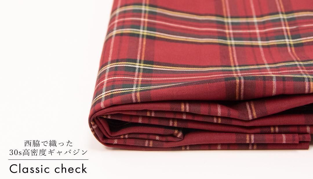 落ち着いたカラーリングのクラシックチェックが、装いに上品なトラッド感を添えます。