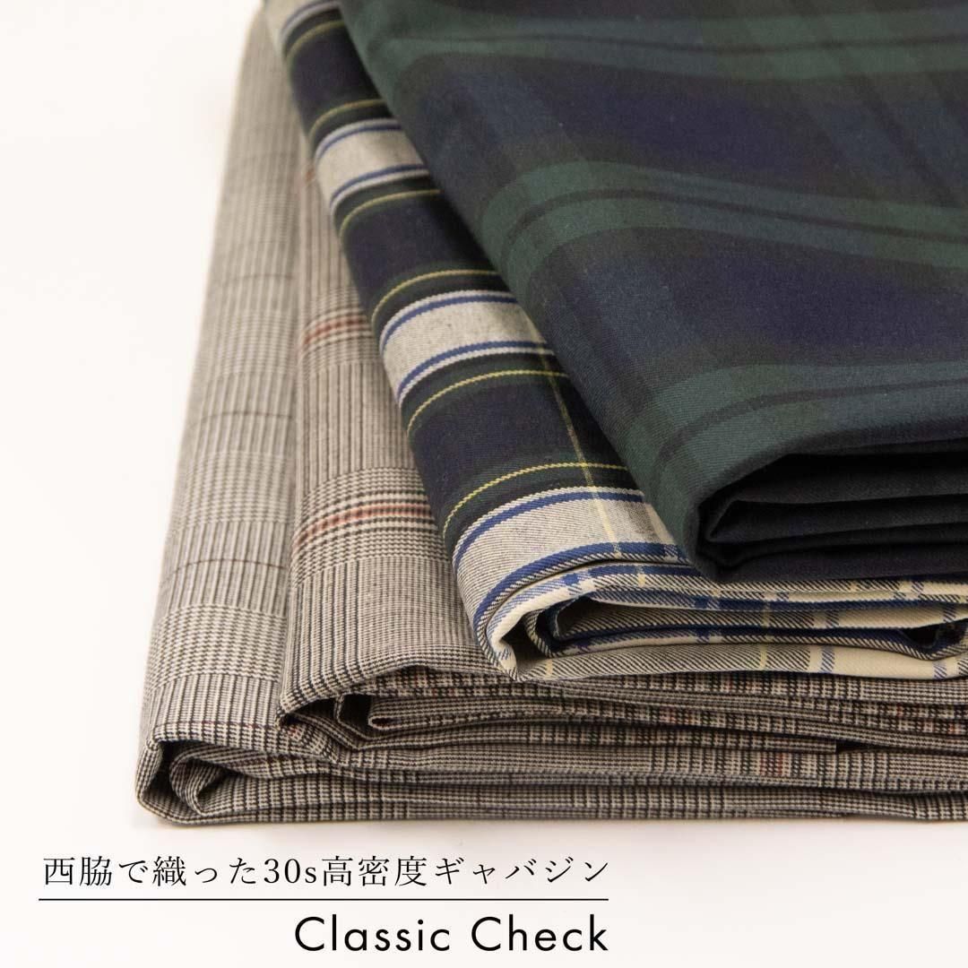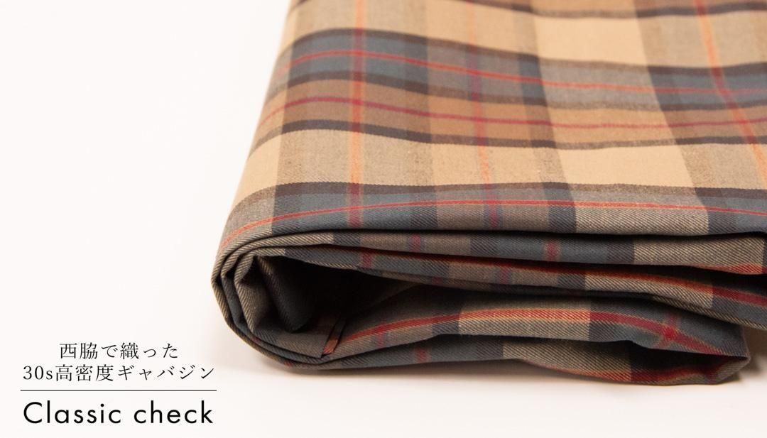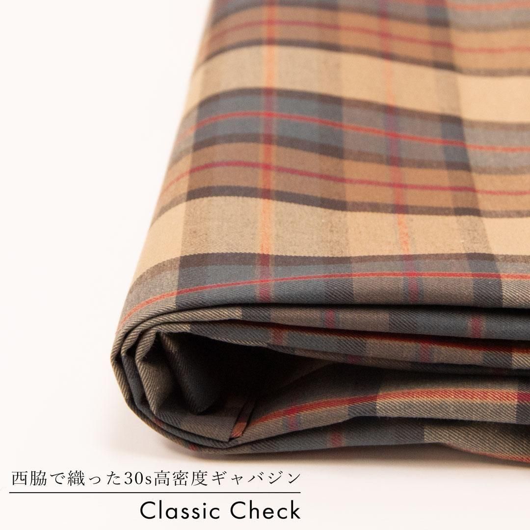 西脇で織った30s高密度ギャバジン - Classic Check-|25245-7 グレージュ
