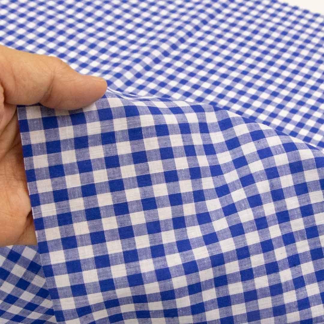 [ 500円+税 ]西脇で織ったコットンリネンギンガム|軽めの仕上がり|25246-2 ブルー