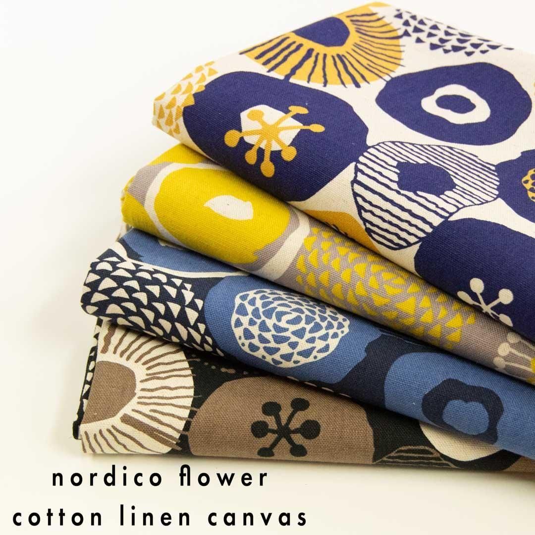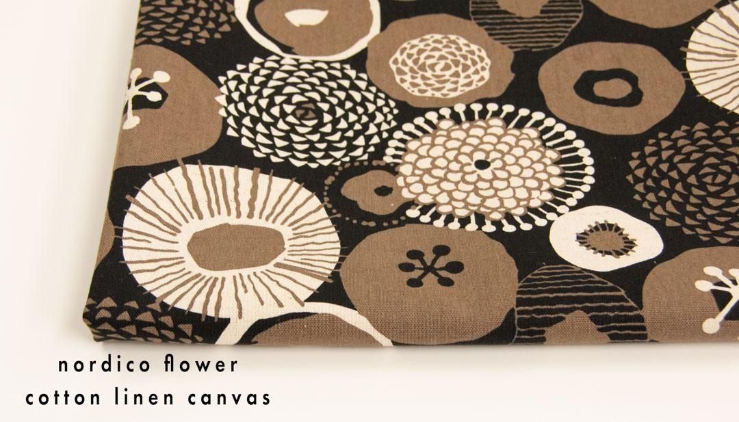 ノルディコフラワー|nordico flower|コットンリネンキャンバス|25237-3 ブラックブラウン