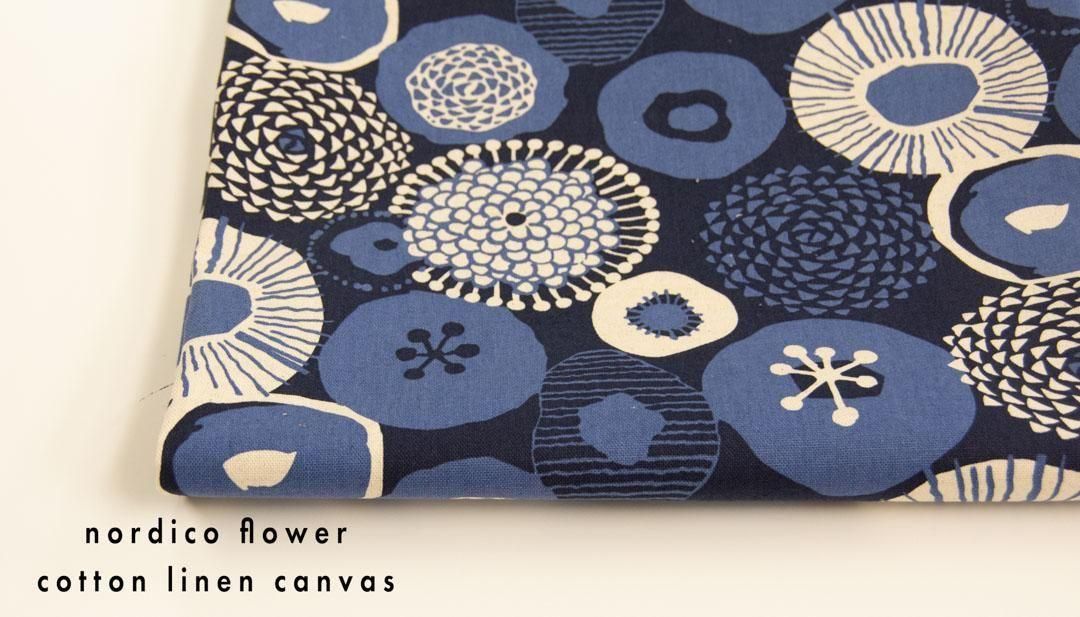 ノルディコフラワー|nordico flower|コットンリネンキャンバス|25237-4 ネイビー
