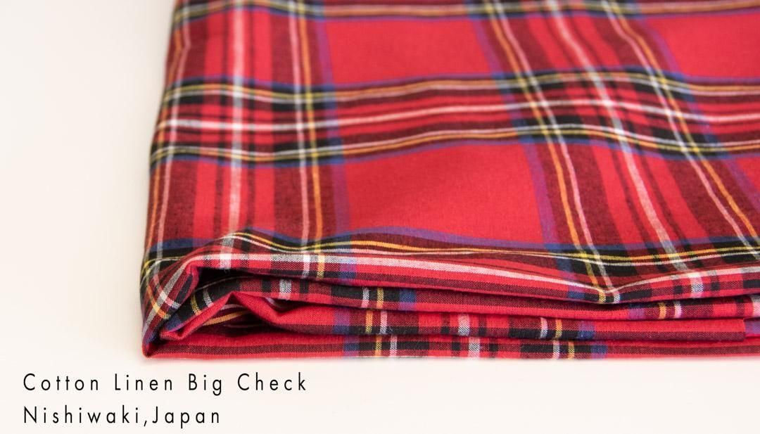 [ New & Time Sale ]西脇で織ったリネンブレンドビッグチェック|オーガニックコットン使用|25251-1 レッド
