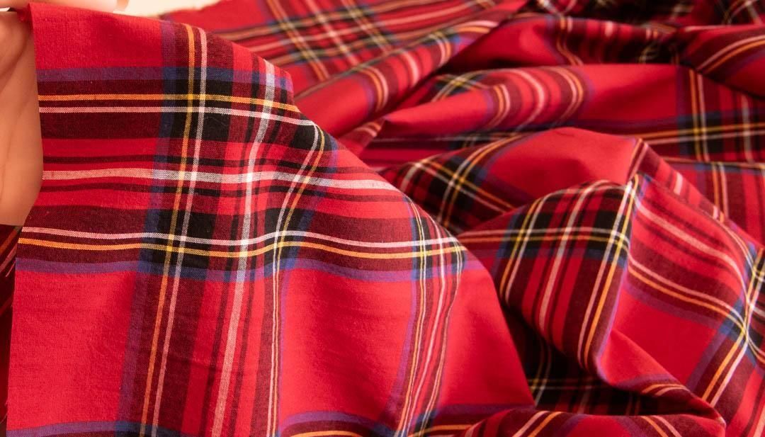 リネンとラミーをブレンドしたコットン麻素材に、大きめのタータンチェックを先染めで織り上げました
