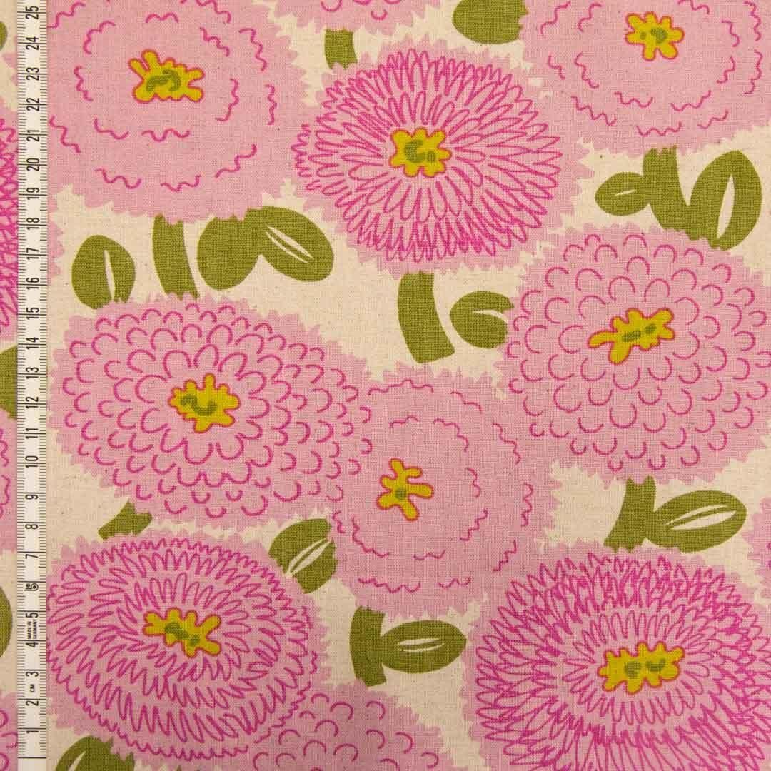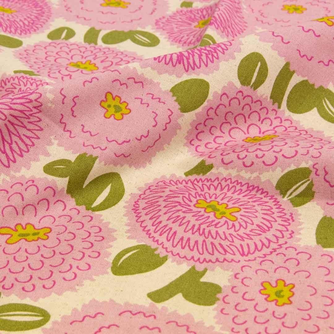 大きく咲いたダリアをモチーフにしたデザインを、コットンリネンキャンバスに描きました。