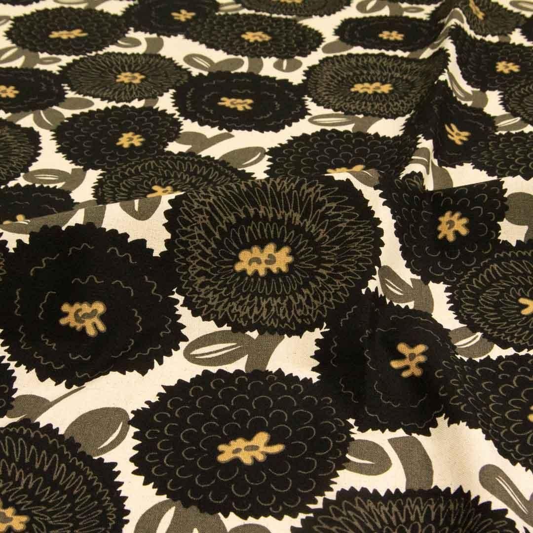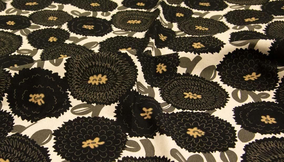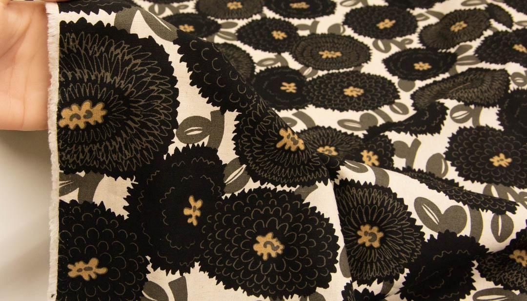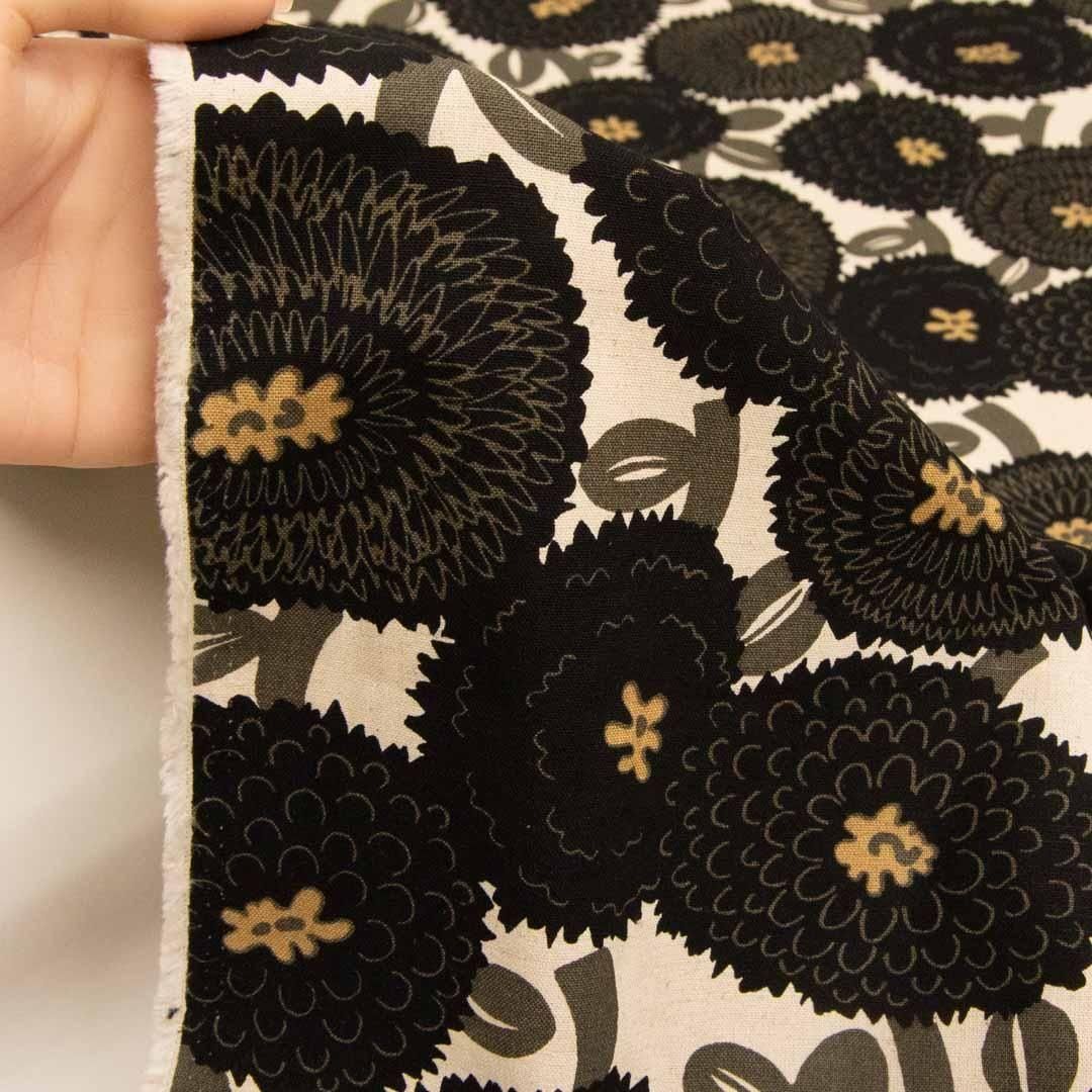 ノルディコダリア|コットンリネンキャンバス|nordico dahlia|25258-4 ナチュラルブラック