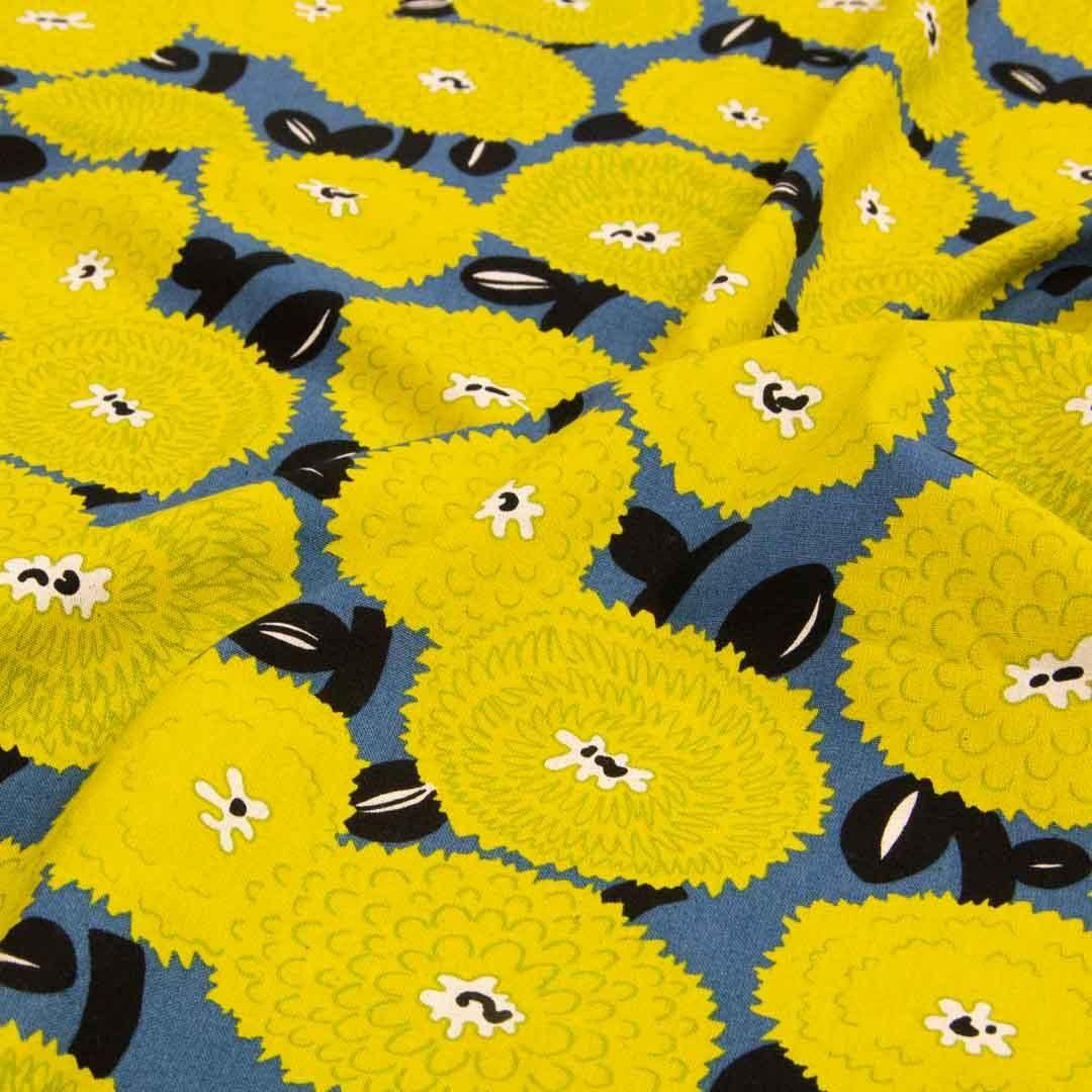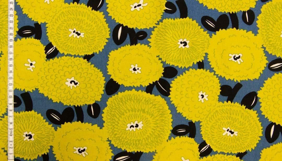 ノルディコダリア|コットンリネンキャンバス|nordico dahlia|25258-6 アッシュブルーイエロー
