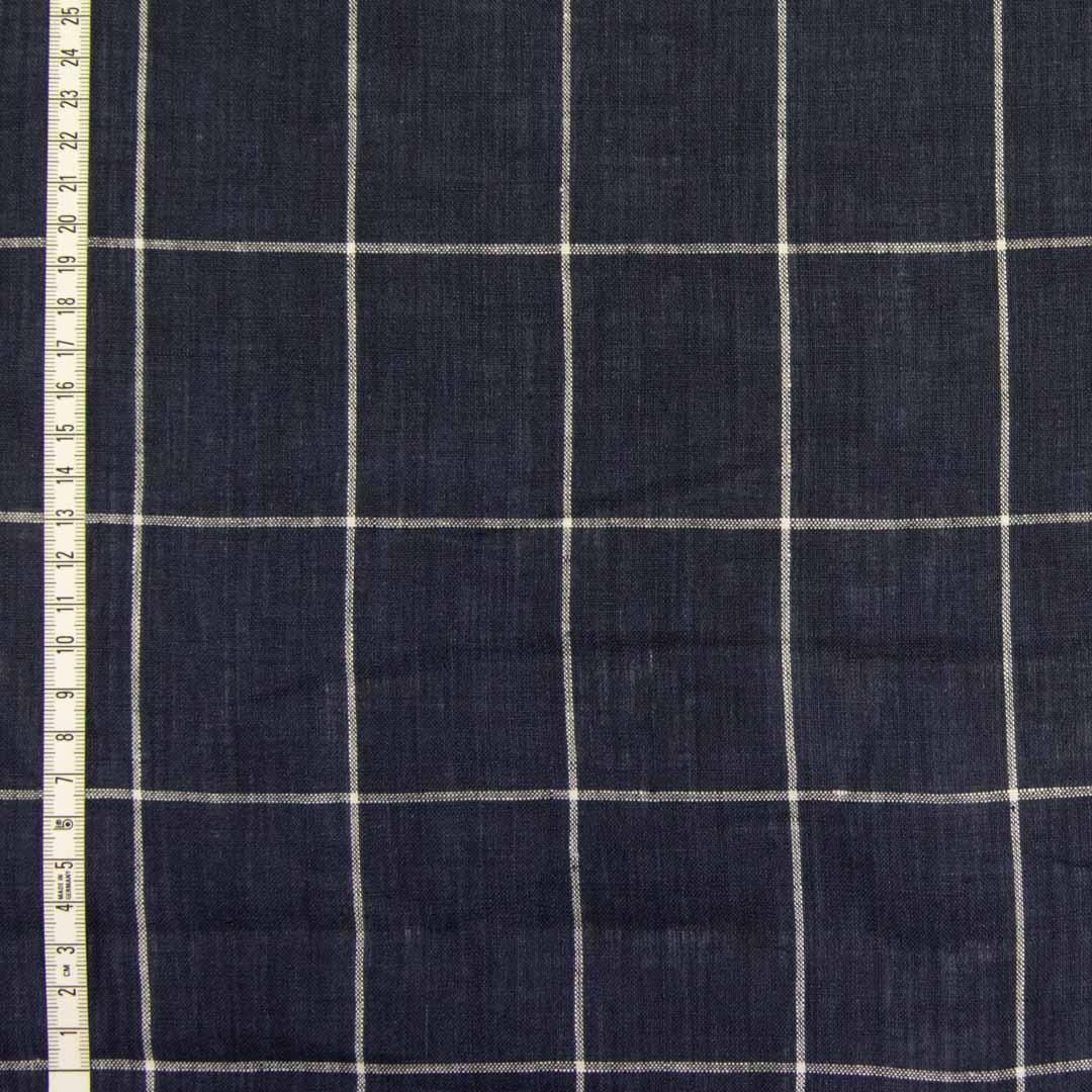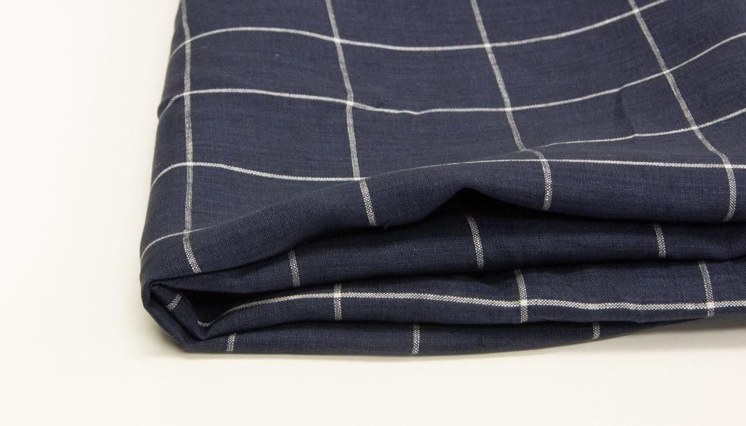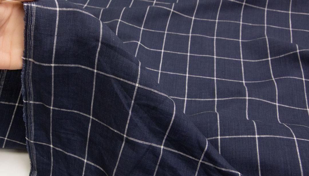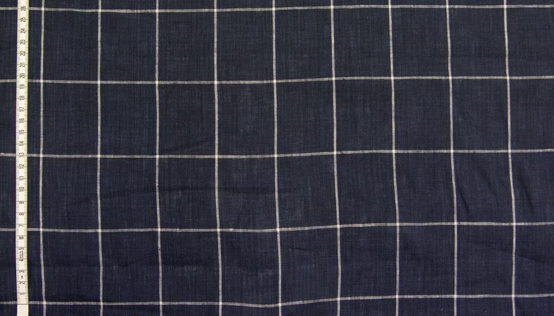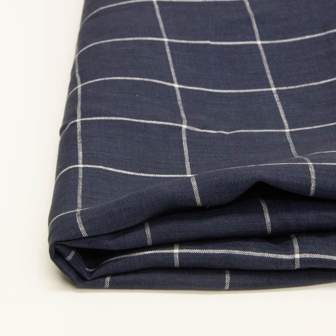 ネイビーをベースに白いラインがすっきりと映える、先染めリネンのウインドウチェック生地