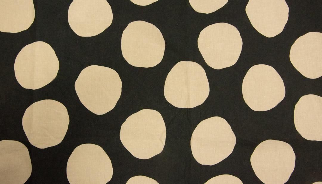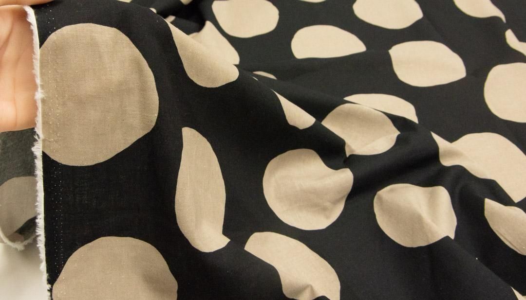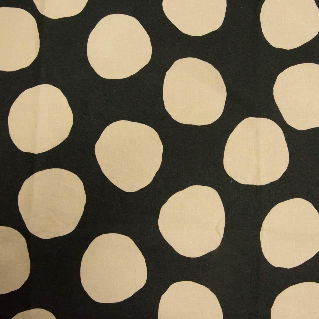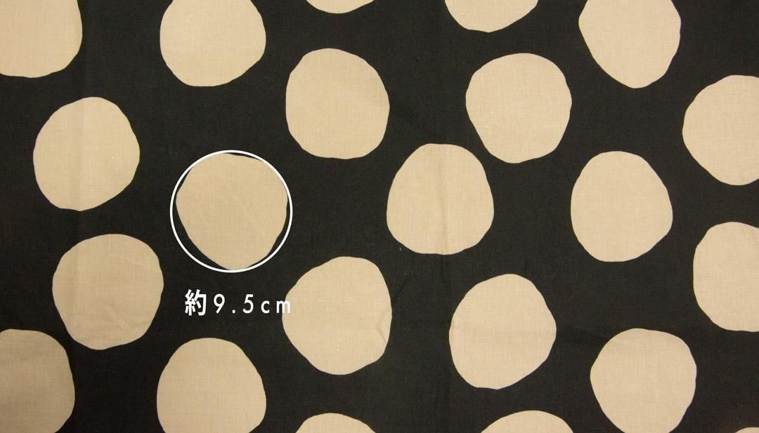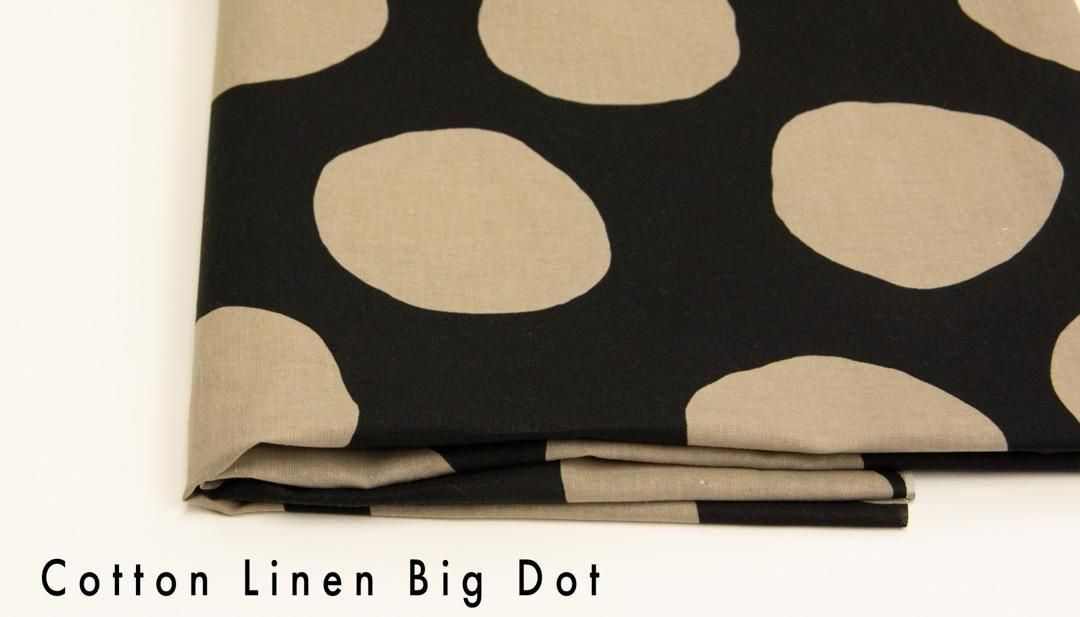コットンリネンシーチング生地に、フリーハンドで描いたような大きなドットがランダムに並んだデザイン