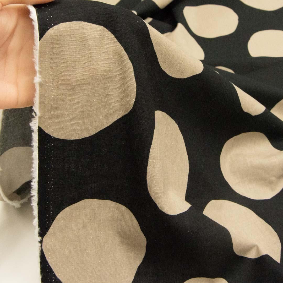 コットンリネンビッグドット|Cotton Linen Big Dot|25238-6 ブラック グレージュ
