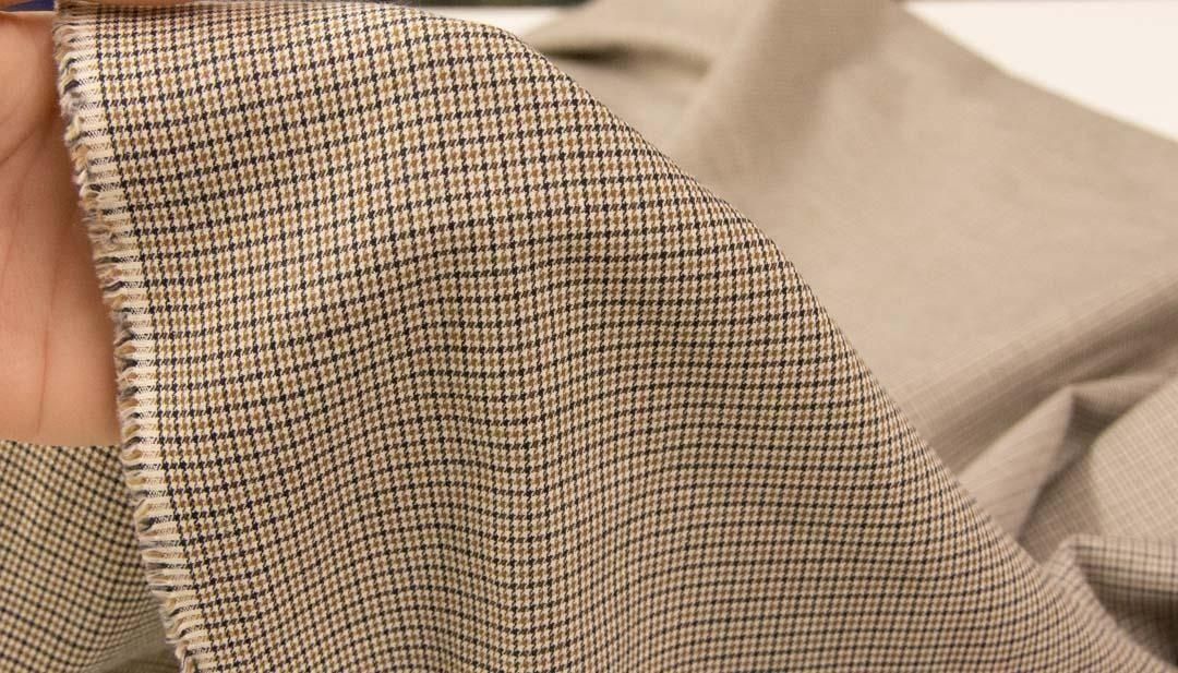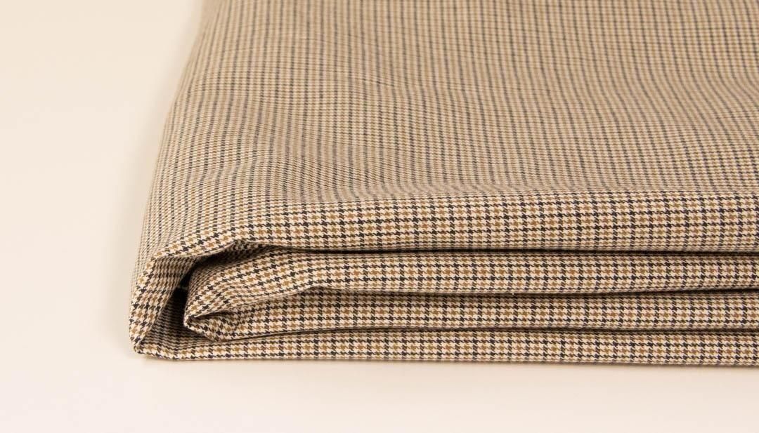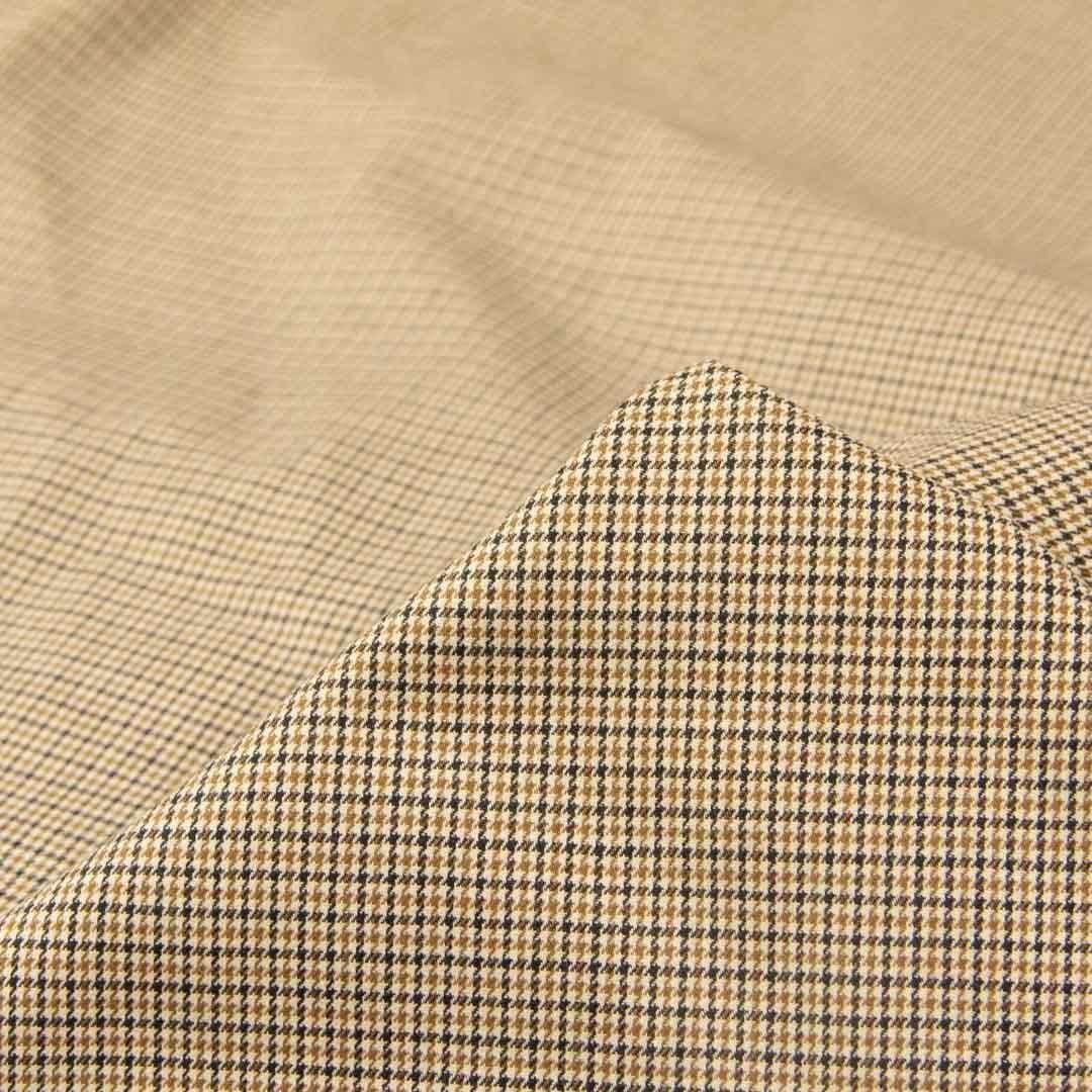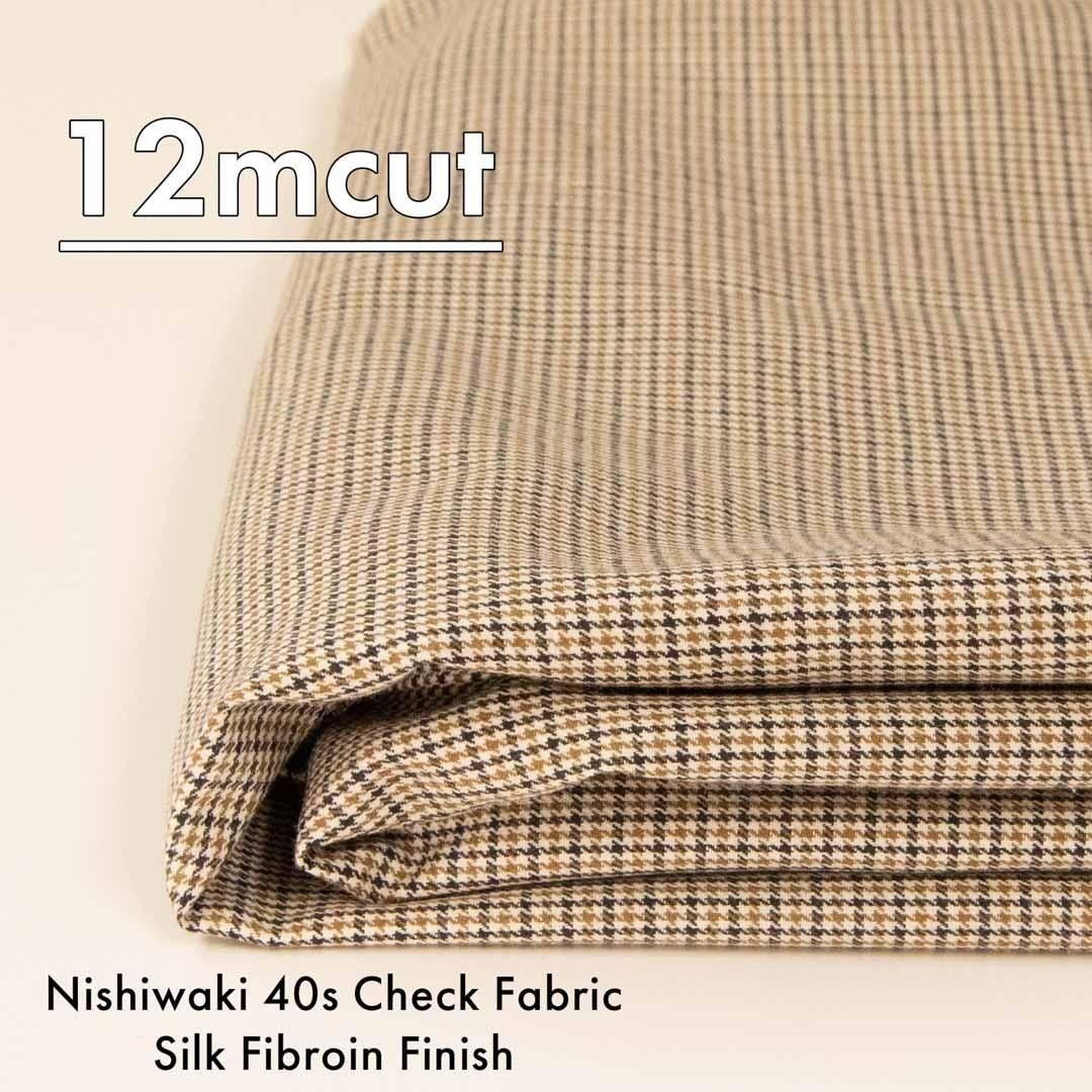 西脇で織った先染め40チェックのSilk Fibroin加工生地です。