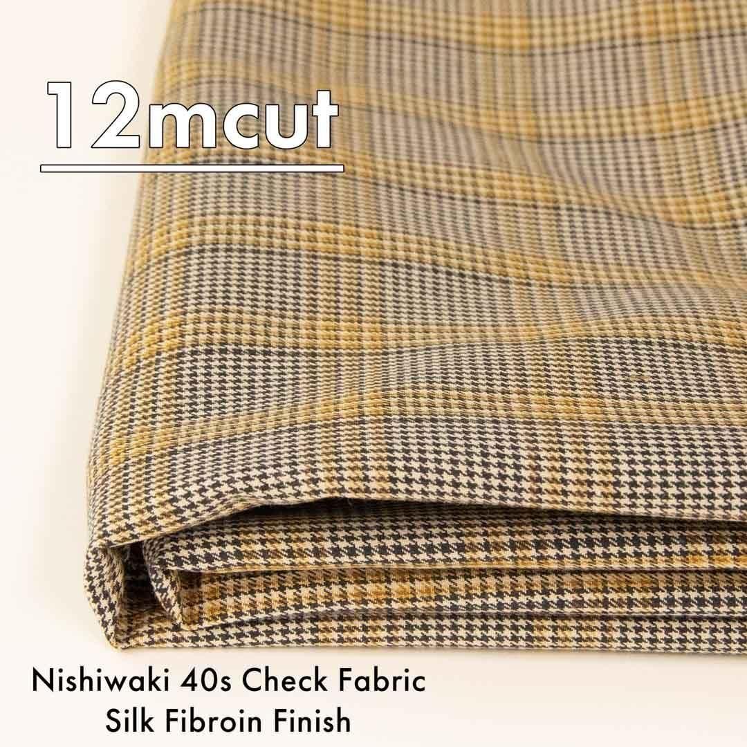 [ 12mcut ]西脇で織った先染め40チェック|Silk Fibroin加工|12m-25265-12 チェックオンチェック