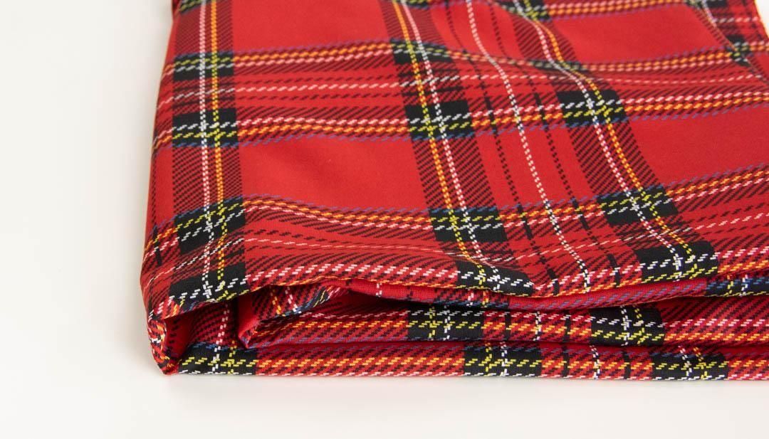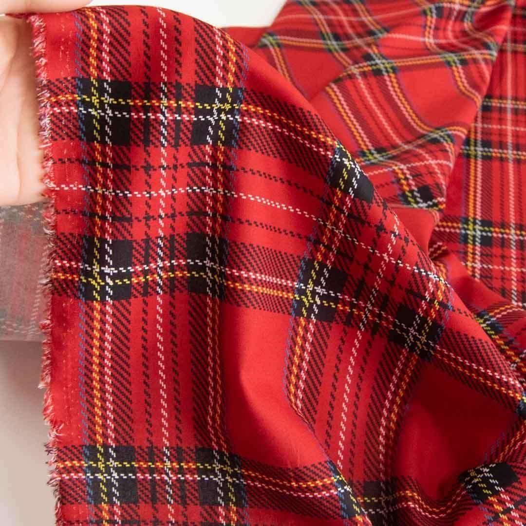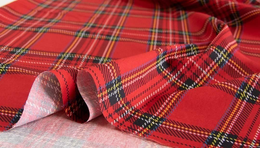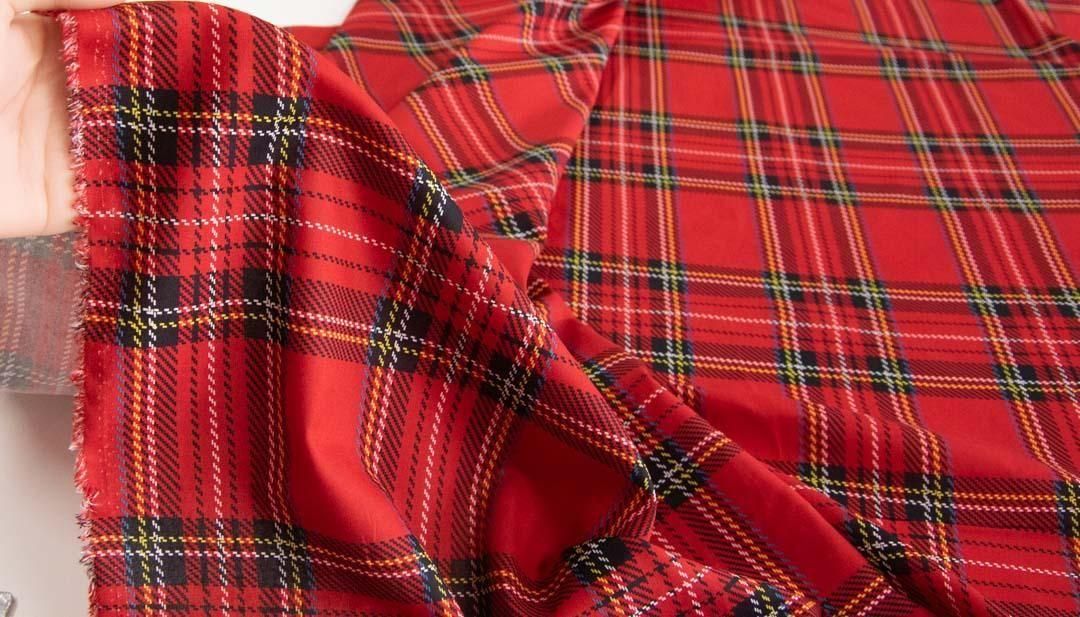 大きめのタータンチェックを、やわらかな表情で楽しめるコットンシーチング生地