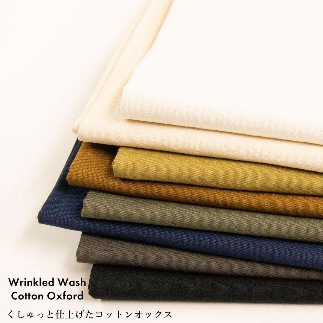 ベーシックで扱いやすいコットンオックス生地に、くしゅっとした仕上がりのワッシャー加工をほどこしました。
