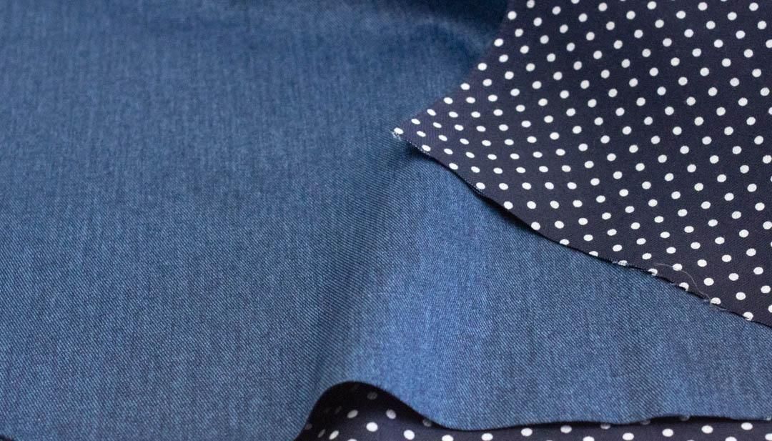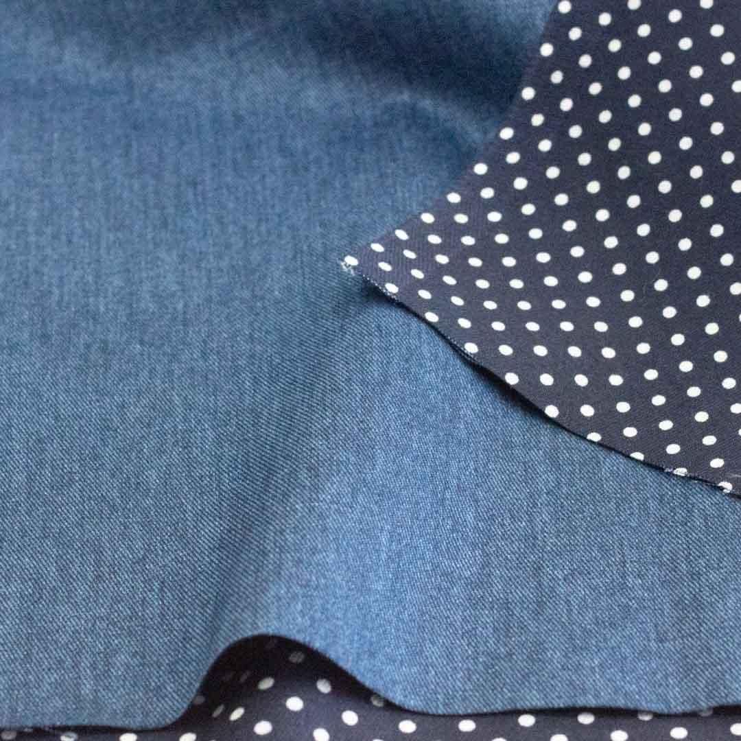 【ハギレ】【長さ 175cm】 Reversible Denim & Dot |リバーシブルデニム&ドット|ツイル生地|