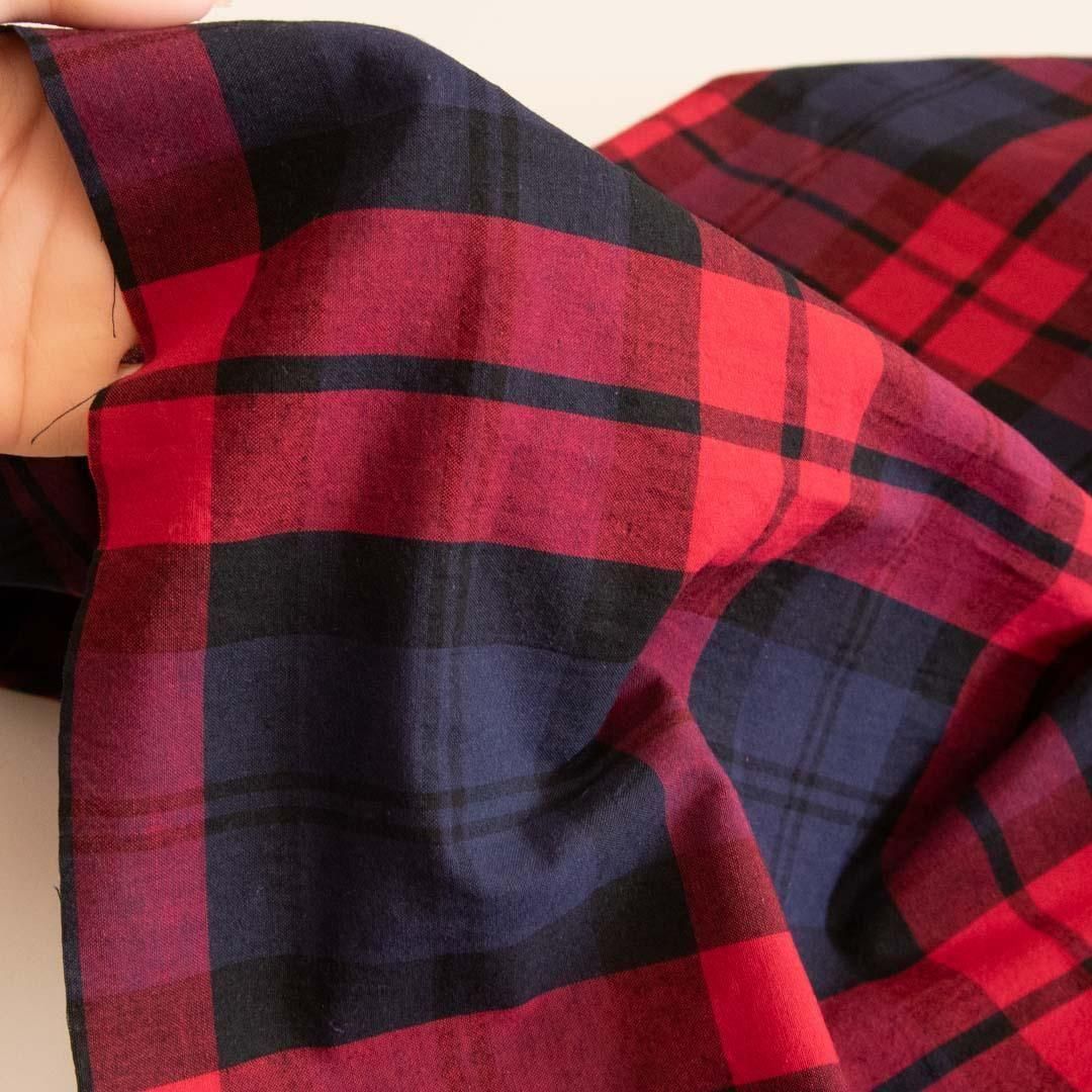【ハギレ】【長さ 25cm】西脇で織ったリネンブレンドビッグチェック|オーガニックコットン使用