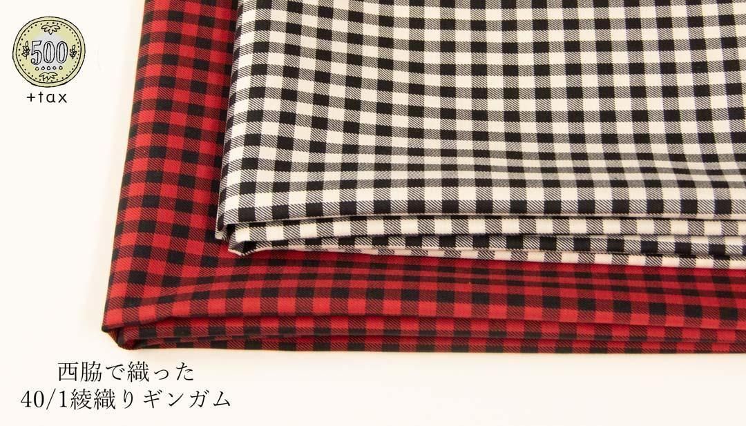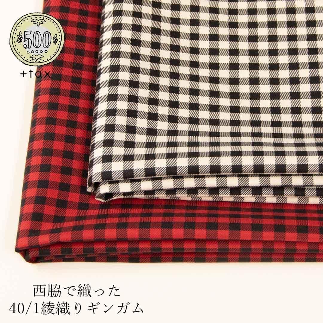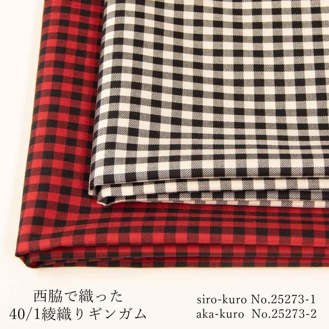 西脇で織った40/1綾織りギンガム|さらりとした風合い|25273-2 アカクロ