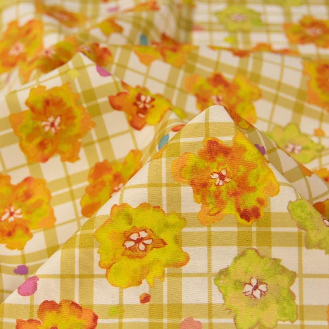 Soft Bloom Check on Check|ソフトブルームチェックオンチェック|インクジェットプリント|145cm巾|25211-2 イエロー