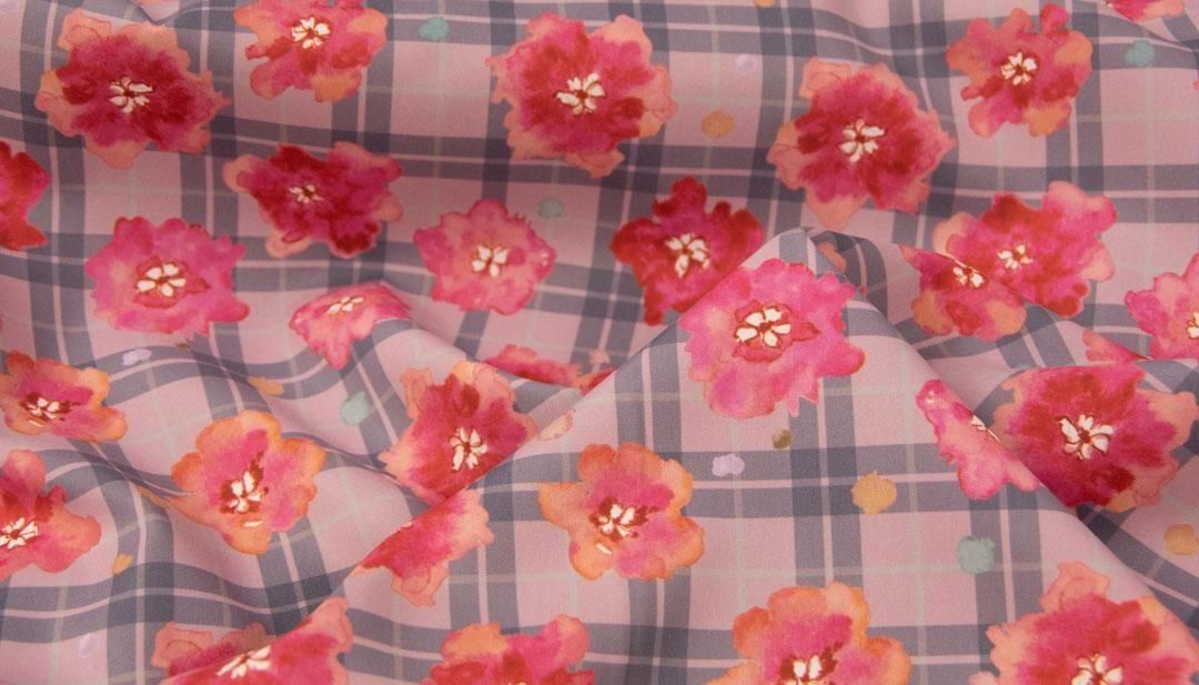 Soft Bloom Check on Check|ソフトブルームチェックオンチェック|インクジェットプリント|145cm巾|25211-3 ピンク