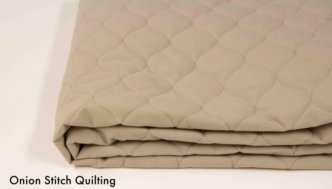 ふんわり微起毛のピーチタッチ生地に、オニオン(たまねぎ)ステッチの撥水キルト