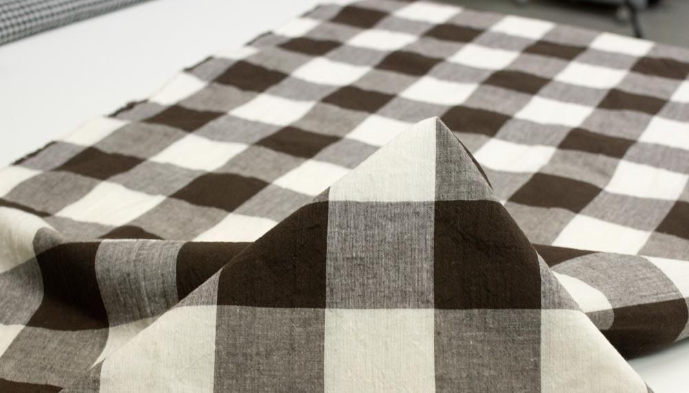 【ハギレ】【長さ 100cm】 西脇で織られたコットンリネンのモノトーンチェック ブラウン