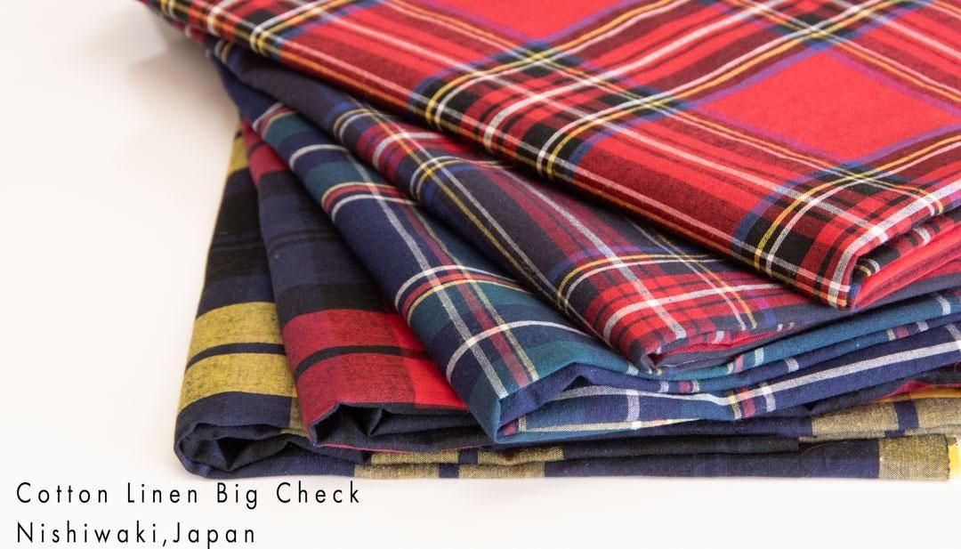 [ New & Time Sale ]西脇で織ったリネンブレンドビッグチェック|オーガニックコットン使用|25251-2 スミクロ